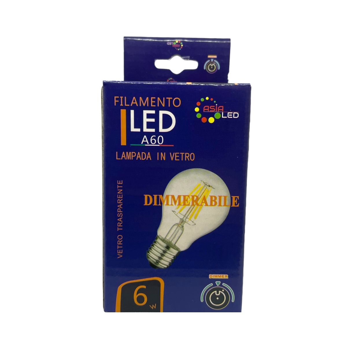 Lampadina LED E27 DIMMERABILE a Filamento A60 6w 2700k Luce Calda - Asia Led